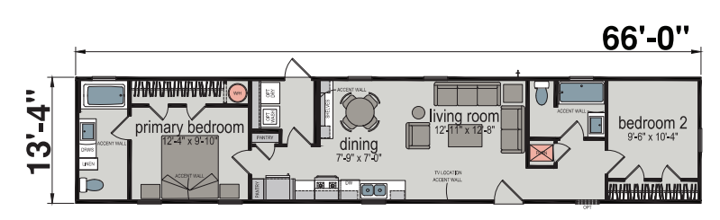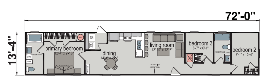 Whether you are looking for a one-bedroom getaway or a three-bedroom home for your family there is a singlewide design that is the perfect fit. Take a look at this curated selection of designs we’ve put together. 14x401 Bedroom 1 Bathroom533 sq.ft 14x66, 2 Bedrooms, 2 Bathroom, 880 sq.ft. 14x72, 3 Bedrooms, 2 Bathrooms, 960 sq.ft.